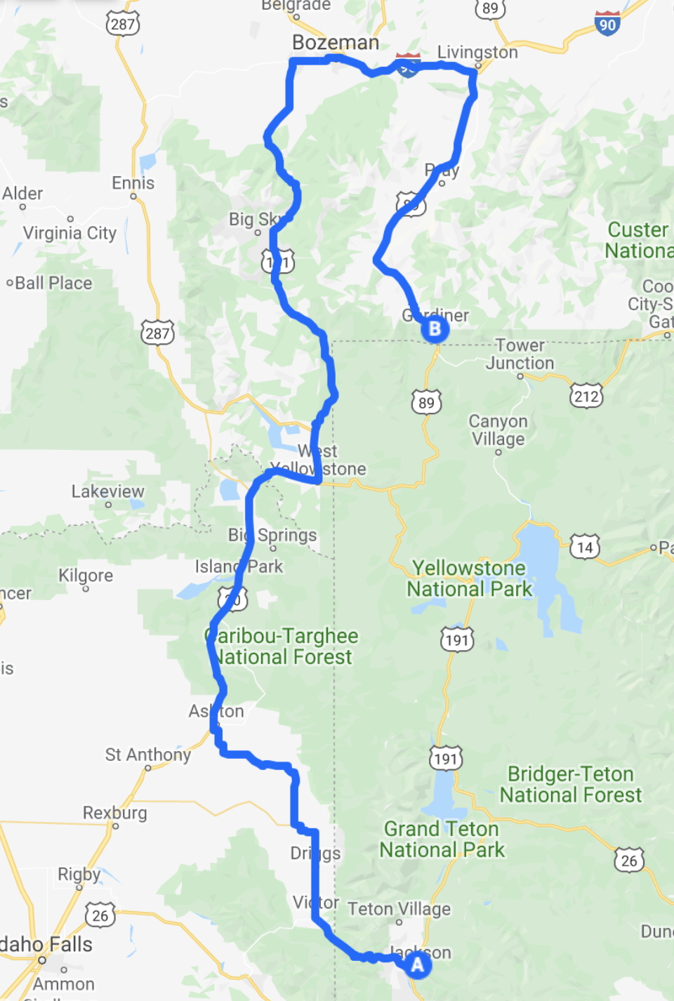Unfortunately, due to snow storms and road closures throughout Yellowstone, I had to go all the way around through Bozeman adding 2x the distance and time.