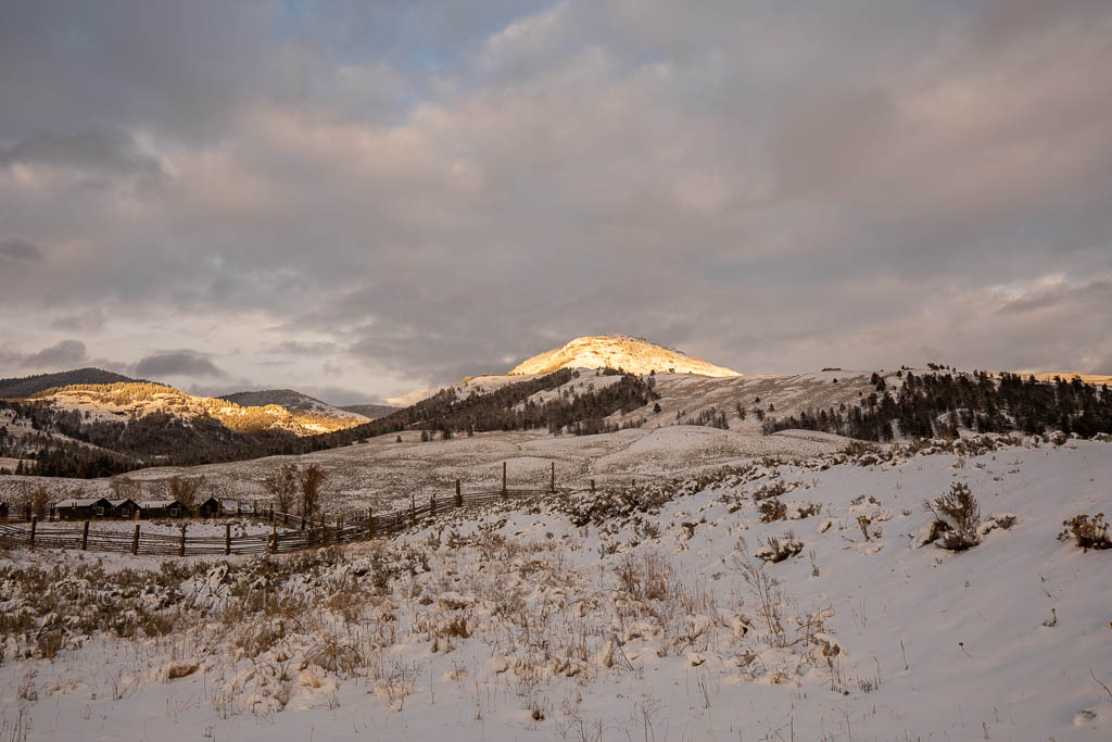 Of the 3 nights, 2 were in Mammoth campground and 1 was at the Super 8 in Gardiner. Mammoth campground is open all year round and is a bargain at $20/night. It had plentiful availability during this time and saves about 15 minutes compared to driving in from Gardiner.